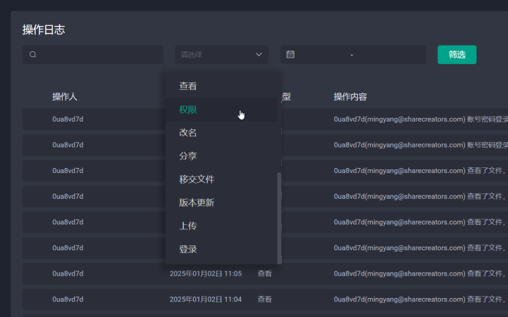 在我们的平台上,每一个操作 —— 无论是阅读、分享、上传还是下载 —— 都通过区块链技术进行安全追踪和记录。这确保了您能随时全面了解并掌控您的文件。此外,如果有大量文件被下载,您还会收到自动提醒,保障您的资产安全并让您的团队知悉情况。