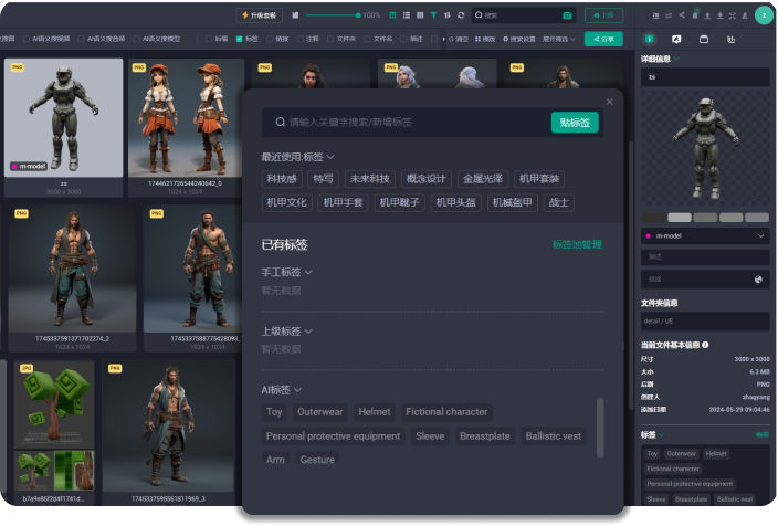 用户可以快速访问网格和材质,清晰的视觉效果便于调整,简化复杂的资产管理。